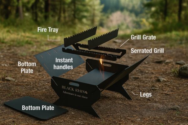 Το Black Rhino Fire Pit 5060 είναι η φορητή εστία φωτιάς & ψησταριά κάρβουνου που ανοίγει παντού — στο βουνό, στην παραλία, στο εξοχικό. Πτυσσόμενη κατασκευή, μικρός όγκος αποθήκευσης και μεγάλη επιφάνεια φωτιάς για δυνατή θέρμανση και ψήσιμο.