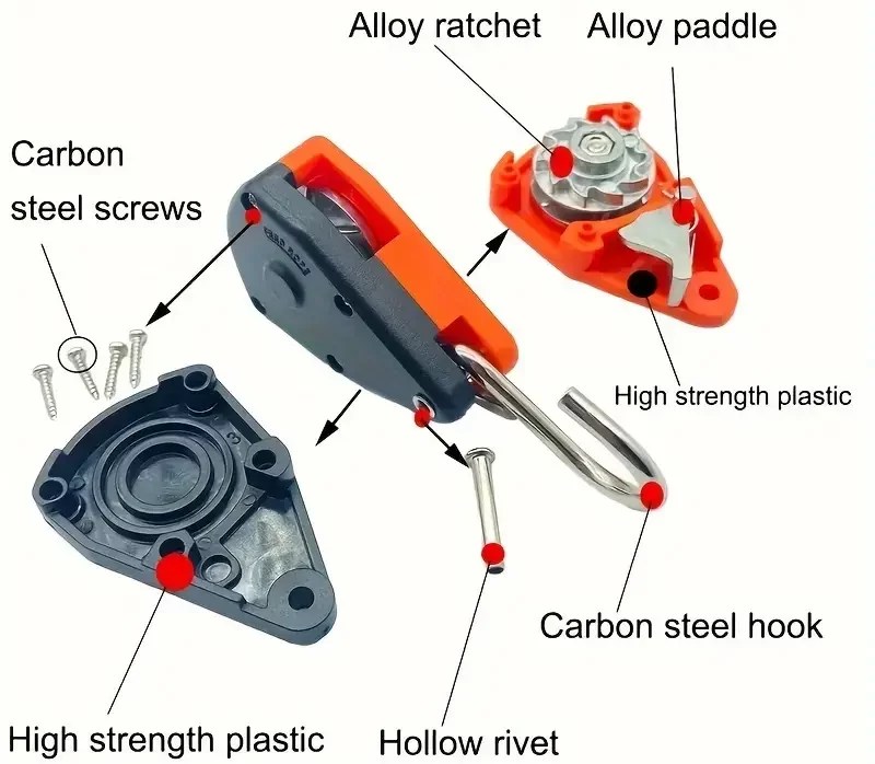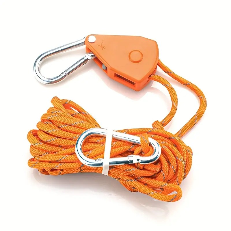 Η ρυθμιζόμενη μεταλλική τροχαλία επιτρέπει την εύκολη ρύθμιση του σχοινιού ανέμου, εξασφαλίζοντας σφιχτή και ασφαλή εφαρμογή. Το σύστημα τροχαλιών μας είναι κατασκευασμένο από ανθεκτικά μεταλλικά γρανάζια από κράμα ψευδαργύρου και πλαστικό περίβλημα ABS υψηλής αντοχής και περιλαμβάνει δύο καραμπίνερ αλουμινίου για ασφαλή εγκατάσταση