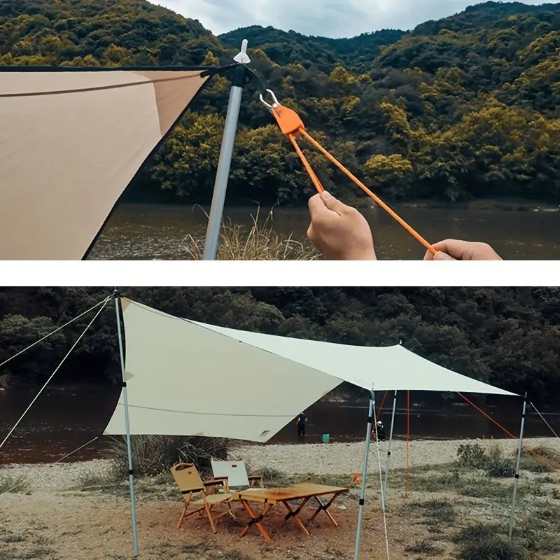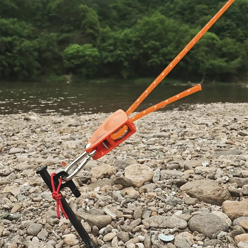 Εύκολη εγκατάσταση και ρύθμιση του μεταλλικού σχοινιού ανέμου με τον συρόμενο τροχό διακοπής, εξασφαλίζοντας γρήγορη και ασφαλή στερέωση. Ο σχεδιασμός περιστροφής αυτού του συστήματος τροχαλιών επιτρέπει την εύκολη σύνδεση, καθιστώντας το ένα απαραίτητο αξεσουάρ κάμπινγκ.