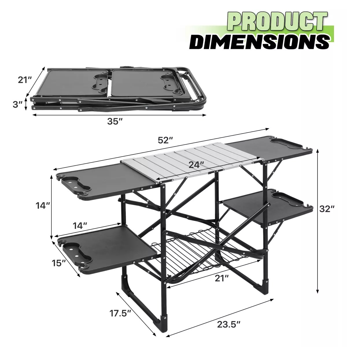 Αναβαθμίστε την υπαίθρια εμπειρία μαγειρέματος με το πτυσσόμενο φορητό τραπέζι σταθμού μαγειρέματος.